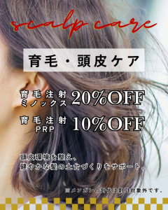 ⟡ 育毛注射ミノックス20%オフ、PRP10%オフ!
