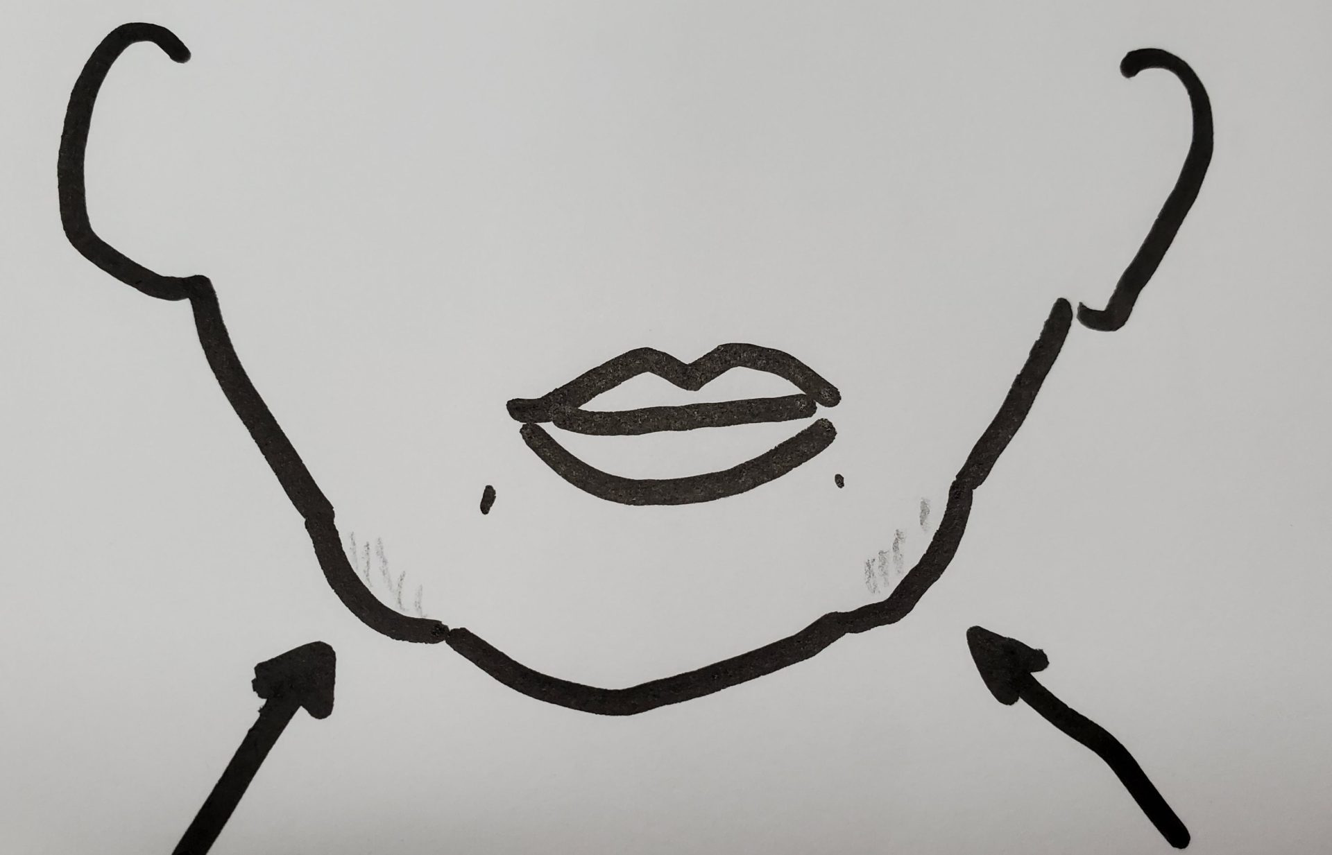 ・「二重顎」:皮膚のハリ弾力低下、脂肪下垂、頤骨の萎縮