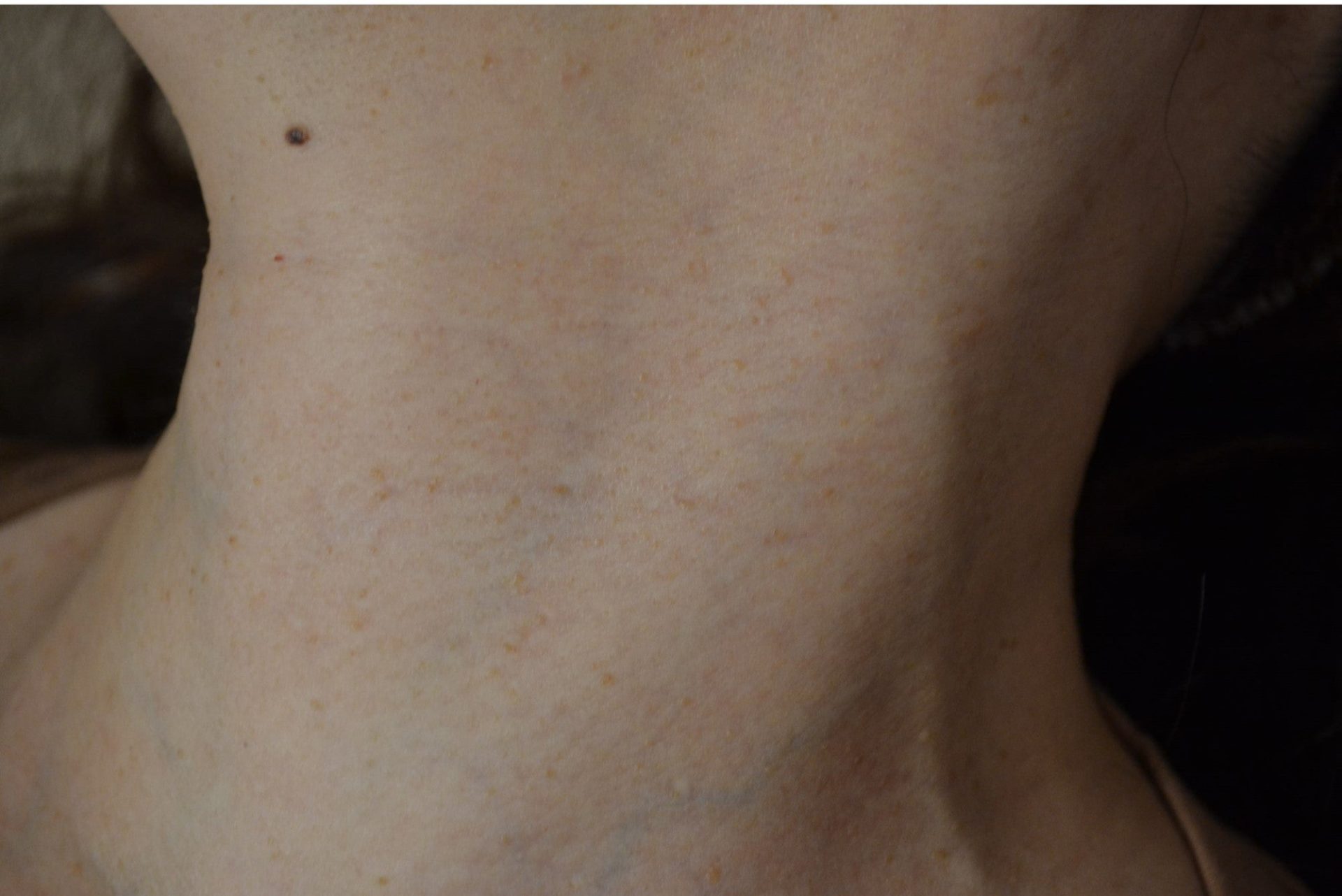 幼少期から顔にそばかすがあったりすれば、若い年齢から二の腕やデコルテのシミ(花弁状色素斑といいます)に悩まされます![]()
