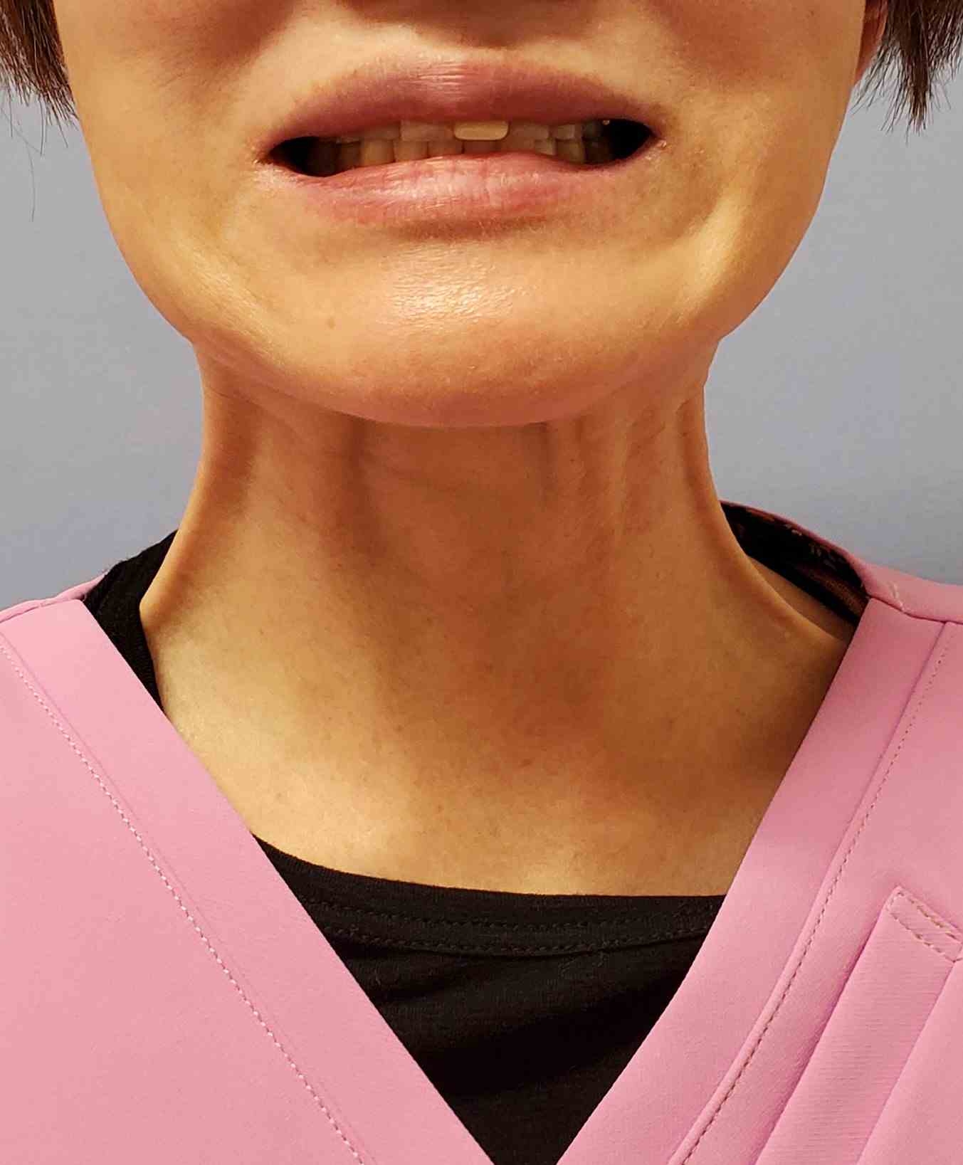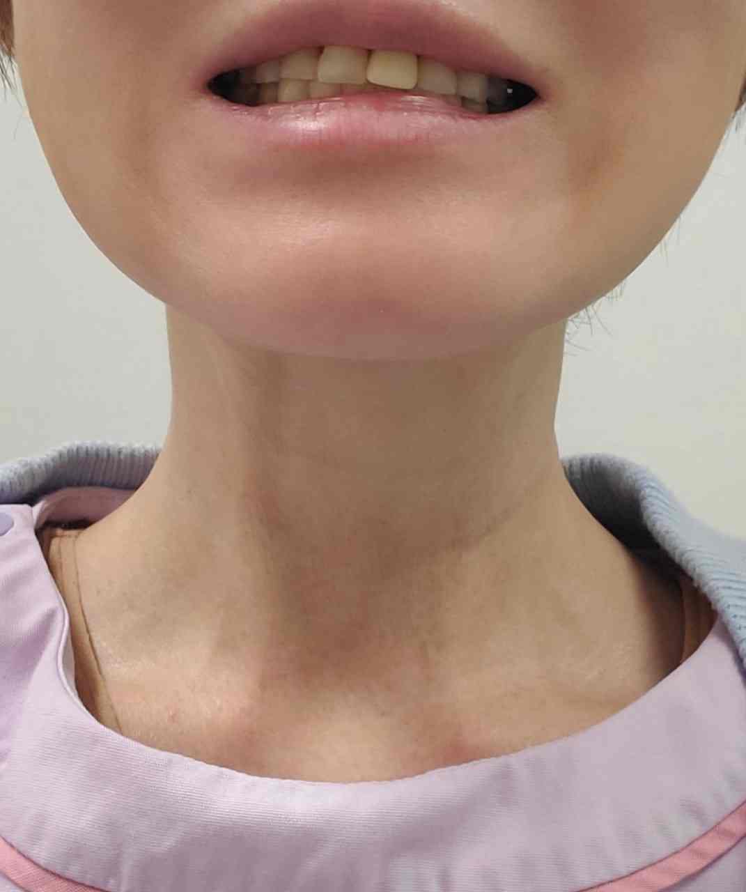 「イー」としたとき、首の縦筋が明らかに緩んでいますね![]()