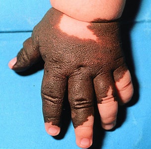 巨大色素性母斑、中でも毛で覆い尽くされた獣皮様母斑はより高い確率で